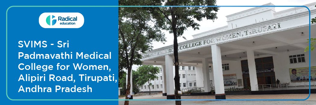 SVIMS Sri Padmavathi Medical College for Women, located on Alipiri Road in Tirupati, Andhra Pradesh, is a prominent medical college exclusively for women. Established under the Sri Venkateswara Institute of Medical Sciences (SVIMS), the college aims to provide high-quality medical education and healthcare services. It offers MBBS and postgraduate medical programs, affiliated with Dr. NTR University of Health Sciences.